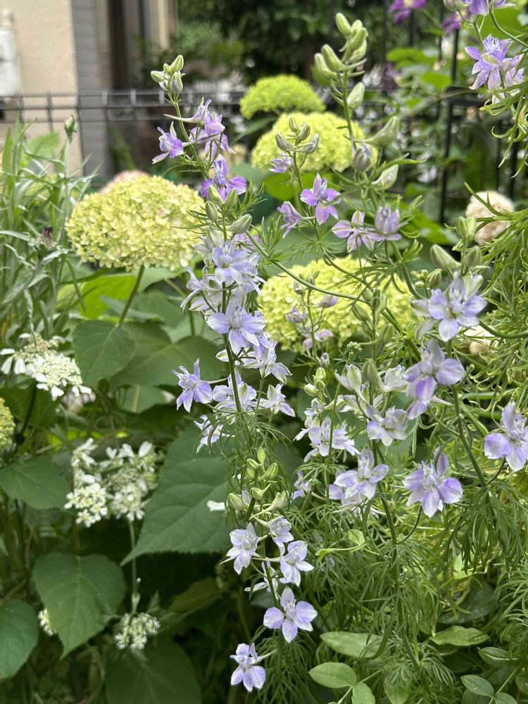 今年初めて植えたラクスパーもふわふわと良い感じに咲いてます。
