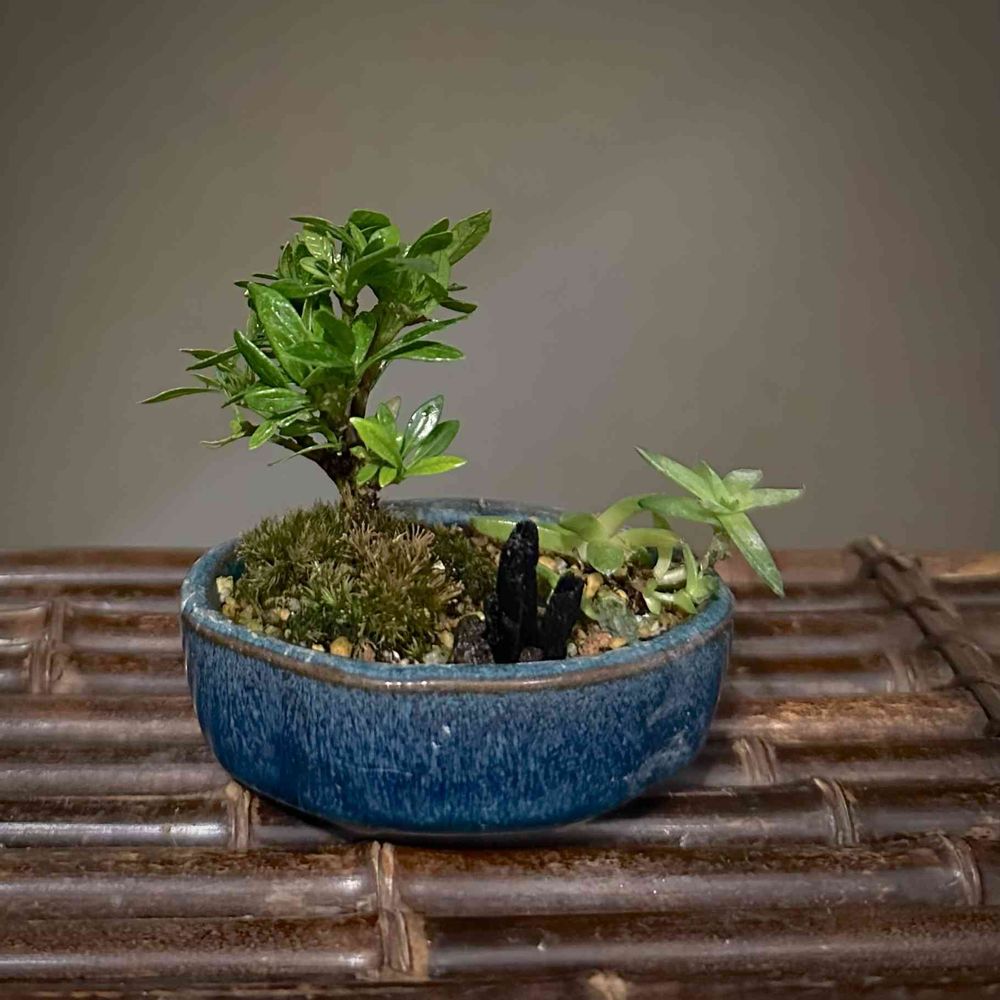 4枚目は「綴化小梔子」。昨年12月にお迎えし、ビニポで越冬、3月にツメレンゲと苔と竹炭を一緒に寄せ植えしました。