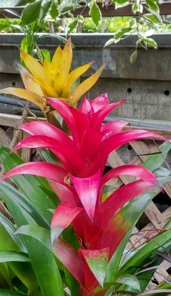 今日のお花グズマニアは 原産地の中央 南アメリカでは 樹木の幹や岩肌などに着生して生長します。