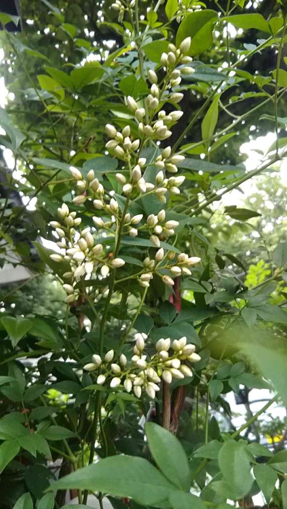 ②ナンテンのつぼみ。