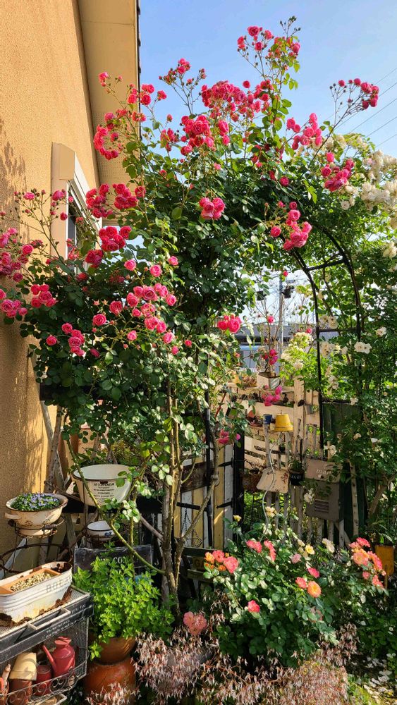 つるバラも終盤を迎える中、ポンポネッラさんが咲き始めてますᰔᩚ