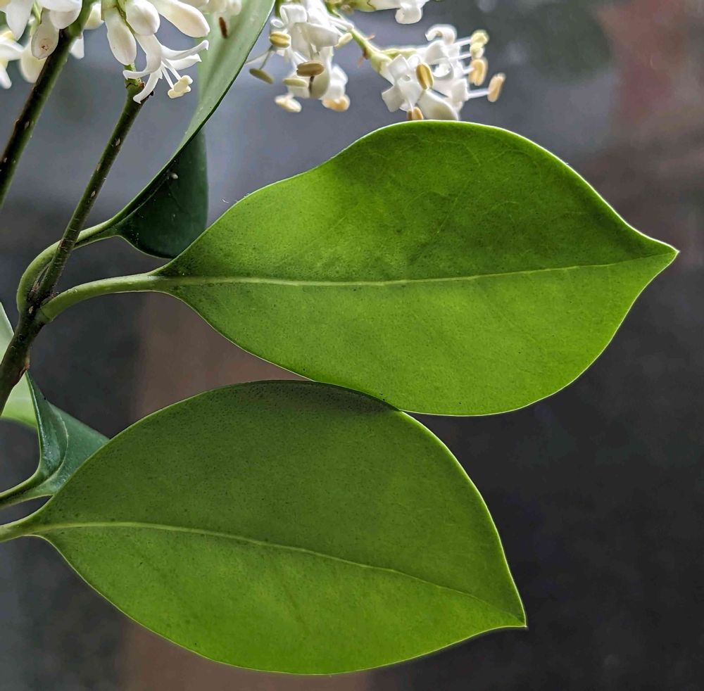 ⑤葉裏から見ると主脈が透けて見えます 実ればトウネズミモチとはっきり区別できるので、また調べてみます