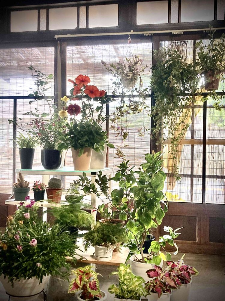土間に並ぶ植物 避難とはいえ いい眺めですね😊✨