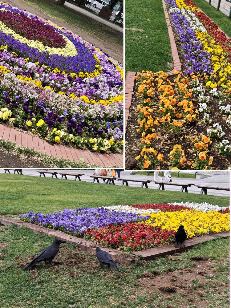🐦⬛が芝生やパンジーの苗を