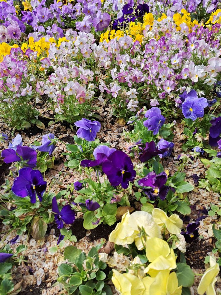 花壇にたくさんのパンジーさん
