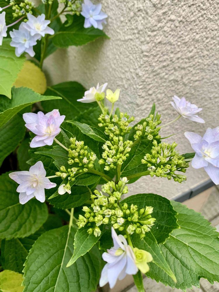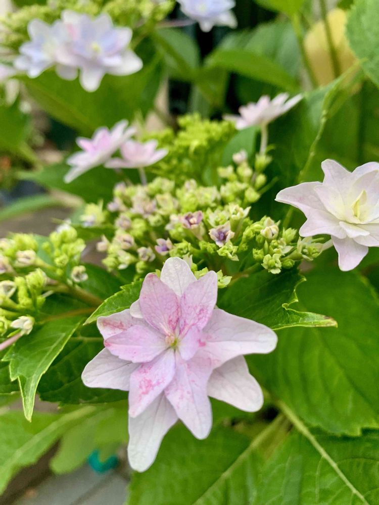 毎年、ピンクか水色か楽しみにしているのですが、ラッキーなことに、今年は両方の色が咲きました!