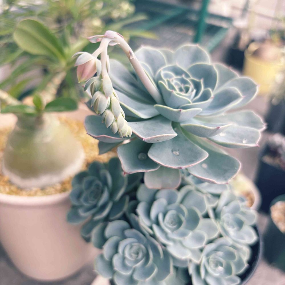 私、多肉さんは全く分からないけど、子株を沢山つけて花🌸までつけてくれてるんだから、めちゃくちゃ上手に育ててるって事はわかるわ☺️