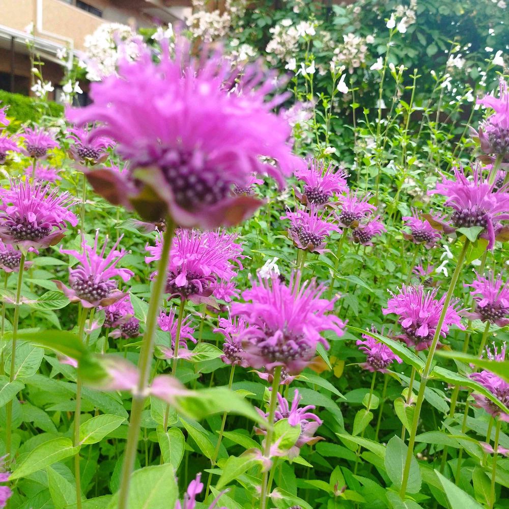 遊歩道には薄紫のベルガモットが咲いてる💜