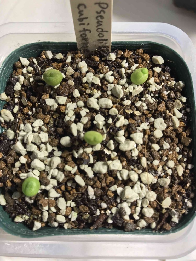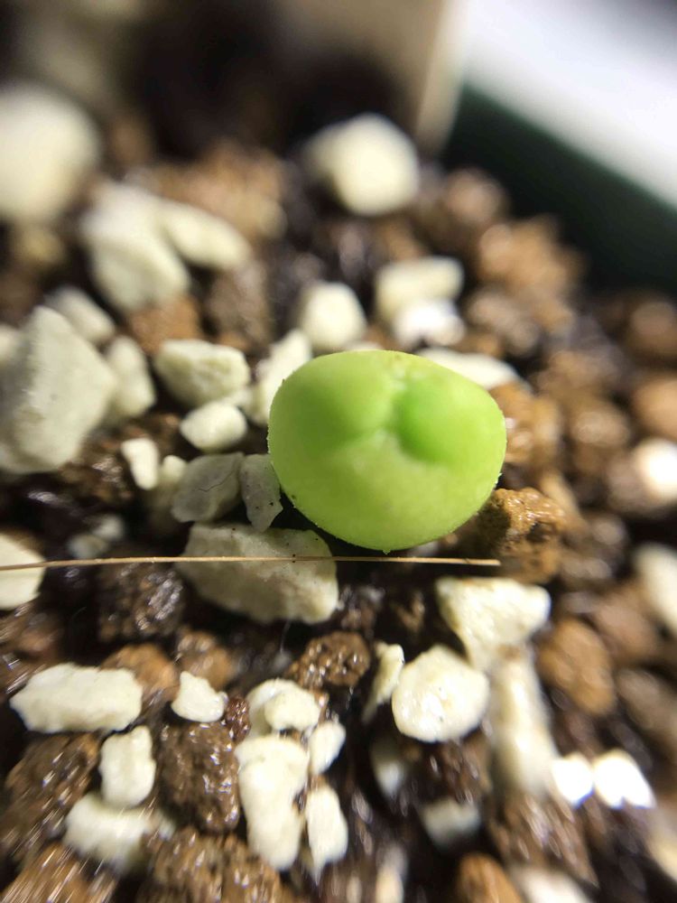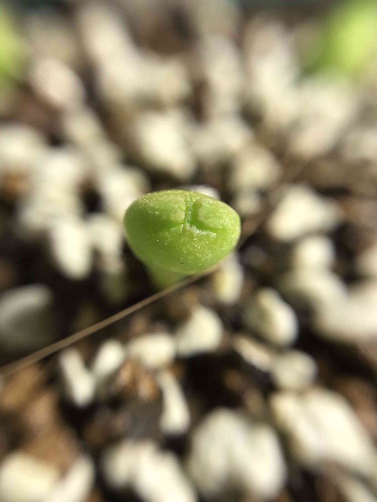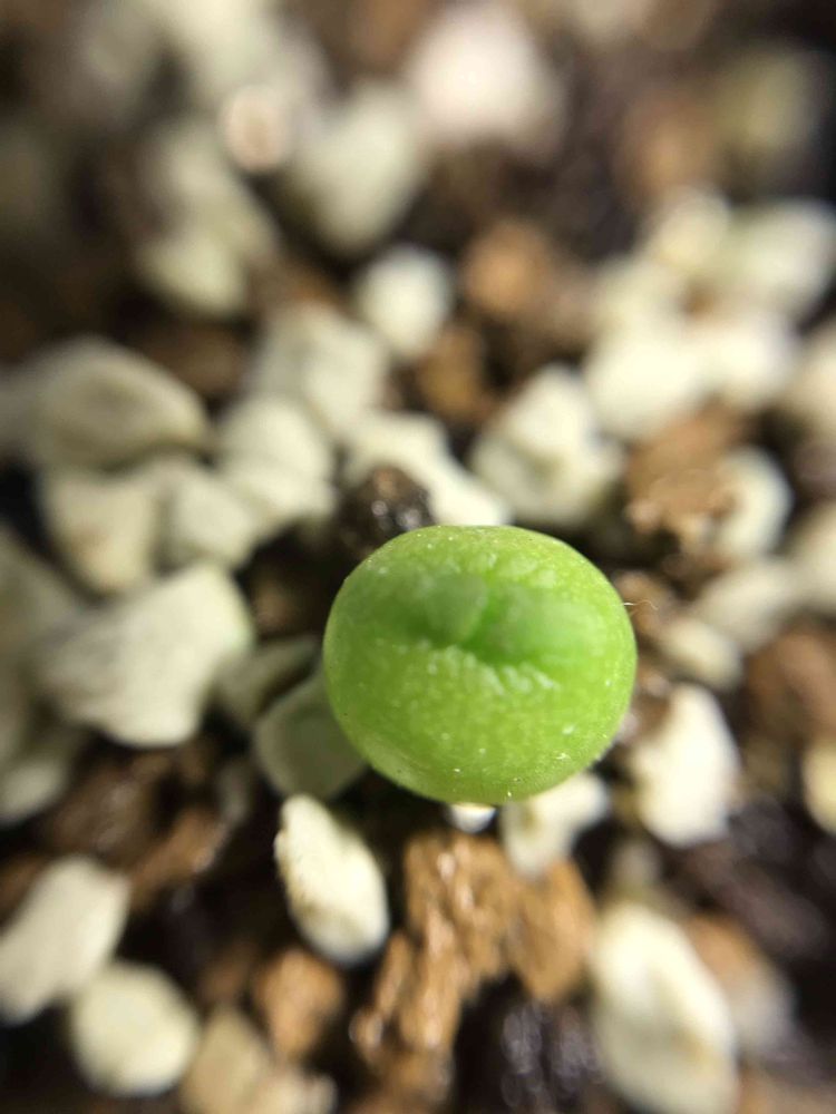 プセウドリトスクビフォルメ 播種から1ヶ月 アップにするとカエル風🐸