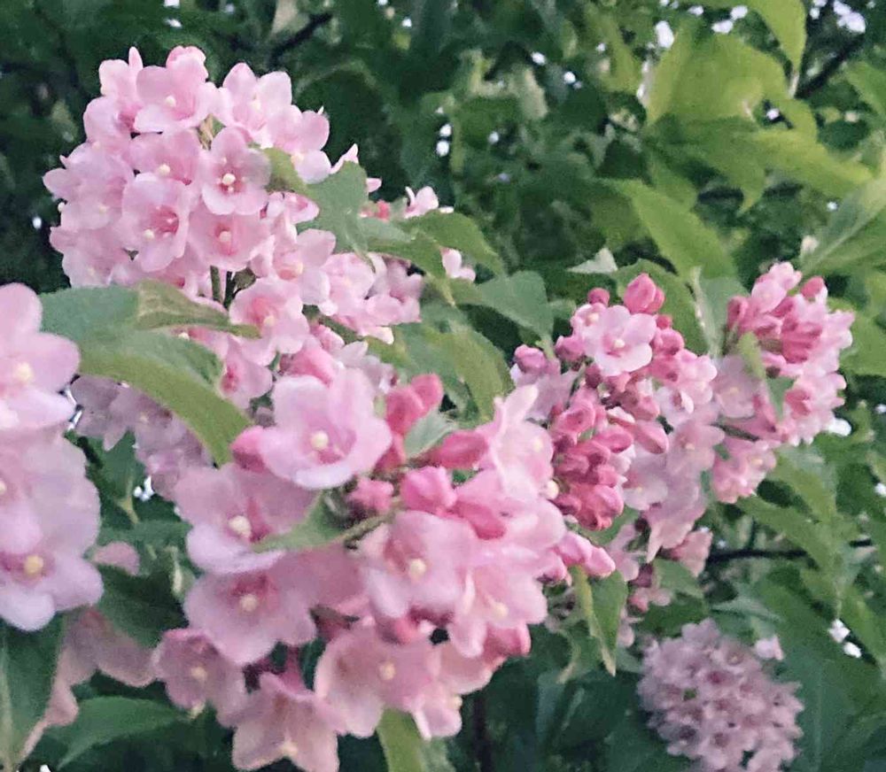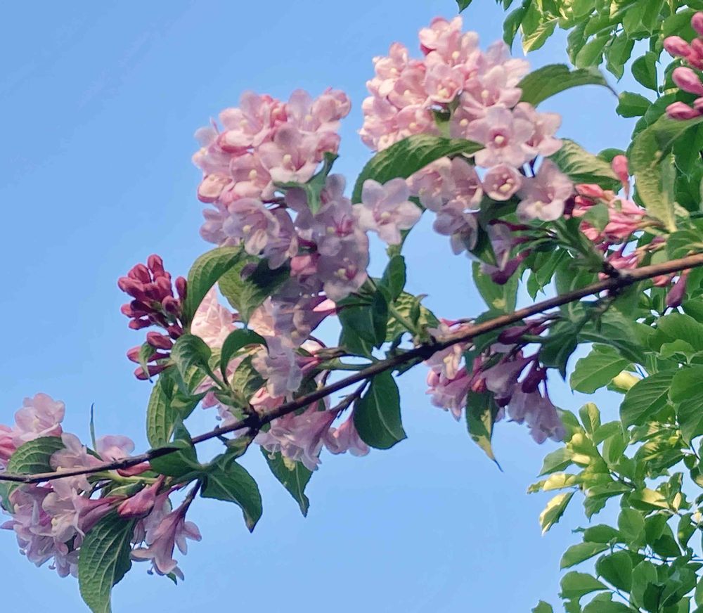 ポンポンとピンクの可愛らしい小花のついた枝が、何本か垂れ下がり、傘状⛱️にゆらゆら?🤔ビョンビョン?かなぁー?今年は見ごたえありました♡