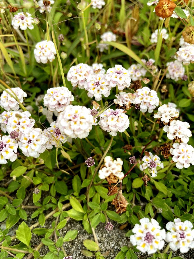ちっちゃくて、白いランタナ❣️と思いきや、調べたらイワダレソウという名。ふむふむ