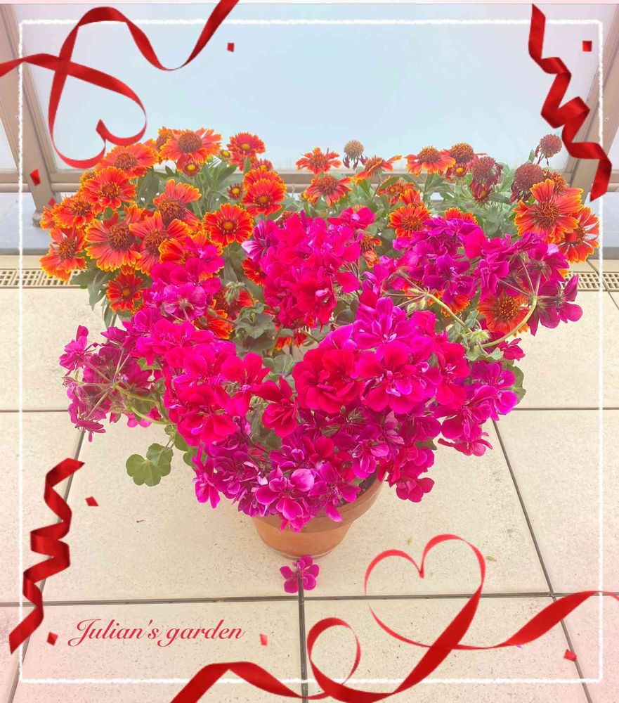 ガイラルディアは2鉢でゼラニウムは1鉢で横に垂れるくらいになっていたのを寄せて🤳しました💖