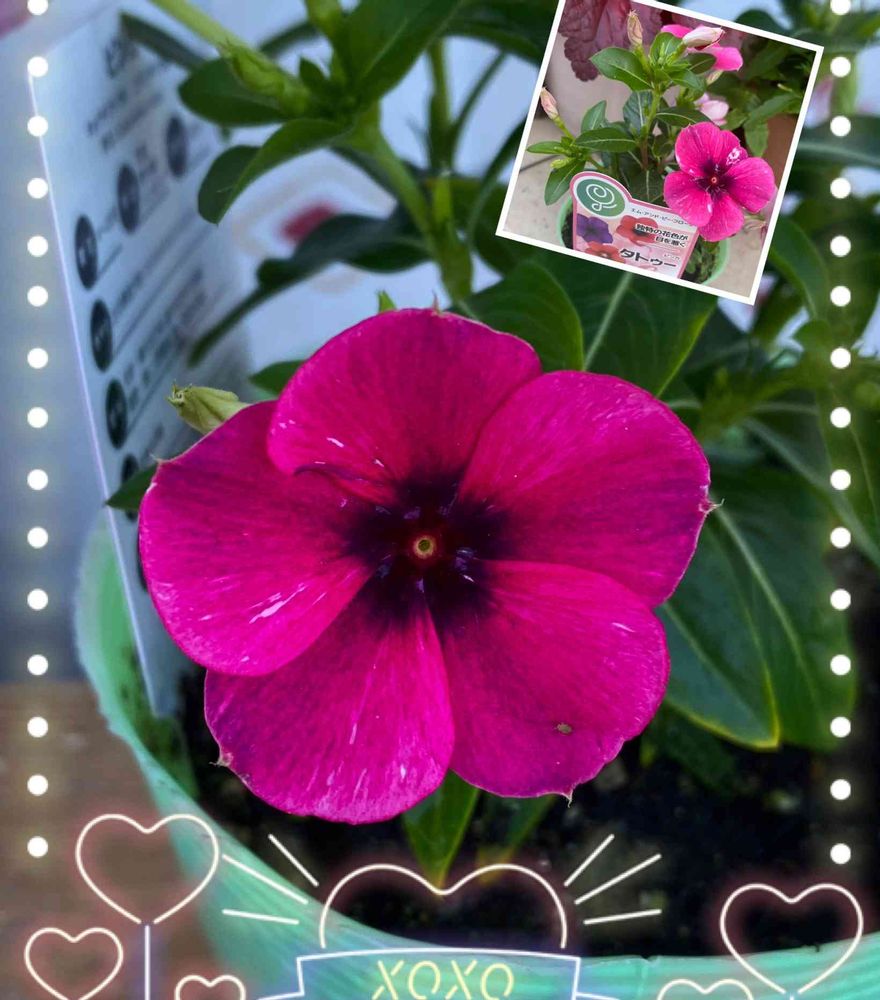 ④スーパーの片隅に一つだけ写真より赤い苗があって久しぶりにお迎えしましたニチニチソウのタトゥー❤️