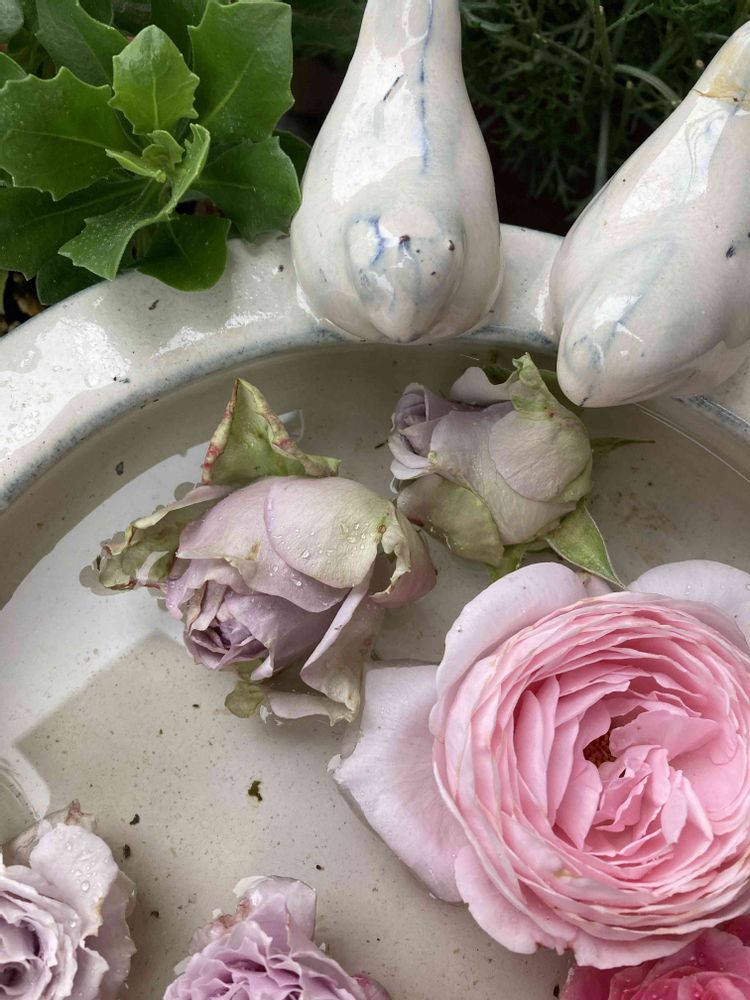 ありがたく挿し芽に挑戦して、蕾はバードバスに。咲きますように♡