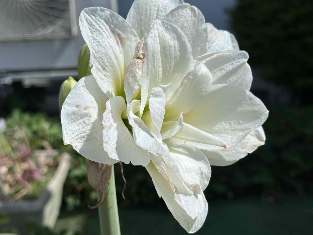 真っ白のアマリリスの花、しかも、八重咲、とても綺麗で、うっとりでした。🫢🫢🫢