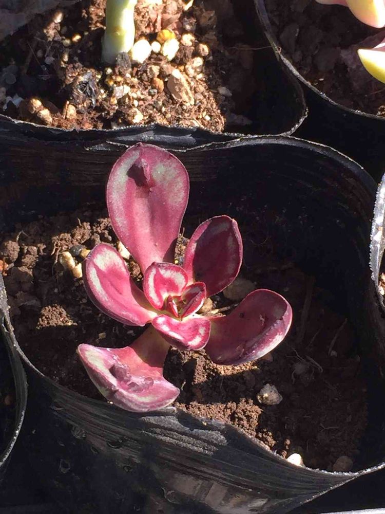 先月くらいに買った丸葉紅司。写真は購入直後に葉をいくつか取った後のもの。この時あまり調べず適当に入れた裏庭の土が悪かったのか湿度に弱いのを知らず水をあげたのが失敗だったのか夏で弱ったのか…葉がしなしなになってバラバラに…。
