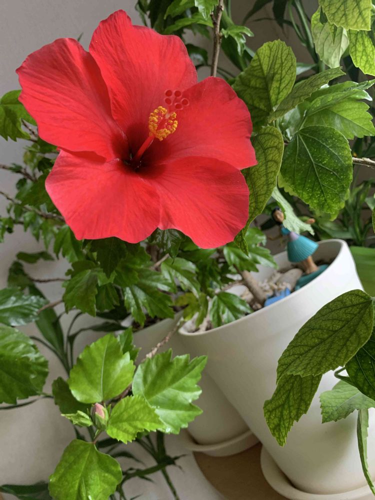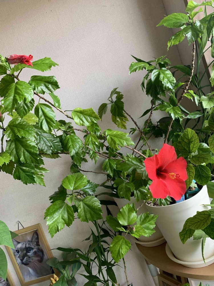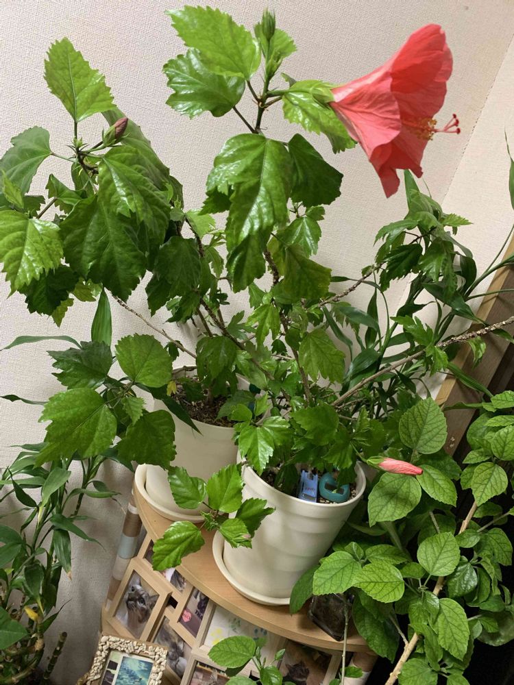 あははは😂💦我が家のハイビスカスとは赤く見えるけど赤じゃなくてピンクなんだよね😂写真で撮る赤く見えるけど肉眼ではショッキングピンク💕なのよ😅けど真っ赤なハイビスカスは夏にショッピングセンターで見るよ😅