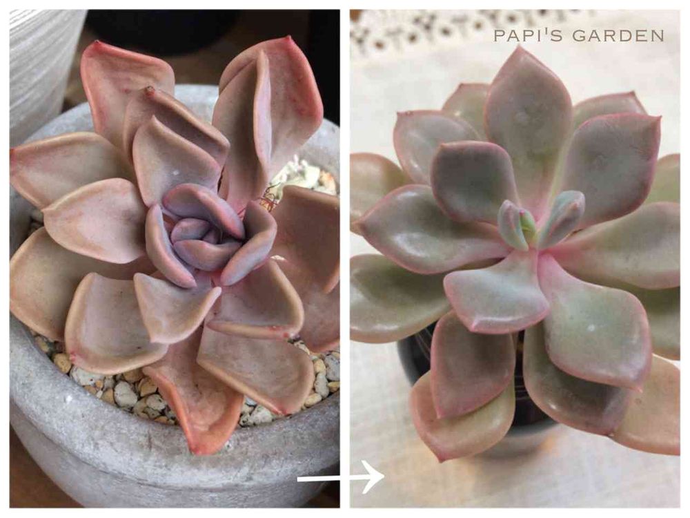 2日で!?!!(⊃ Д)⊃≡゚ ゚ うちのシャンパンちゃん届いてから新しい鉢に植えるまで1週間以上そのままにしてたからか、今1枚ずつ葉っぱを落としていってるんです( ´•̥̥̥ω•̥̥̥`)