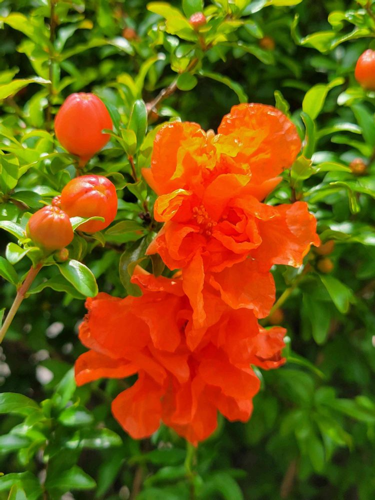 花ザクロの蕾はちっちゃくて可愛いけど、お花はくしゃくしゃって感じで咲いていますよ🎶💓