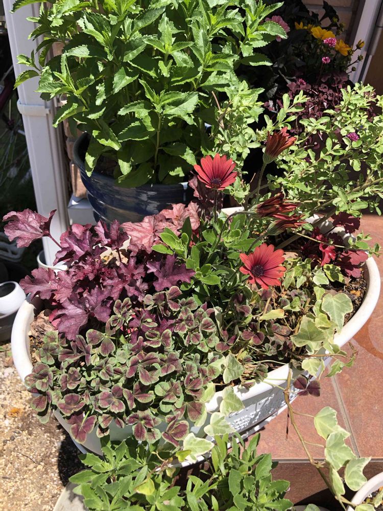 去年の寄せ植えを崩してマムやヒューケラを入れて🥰