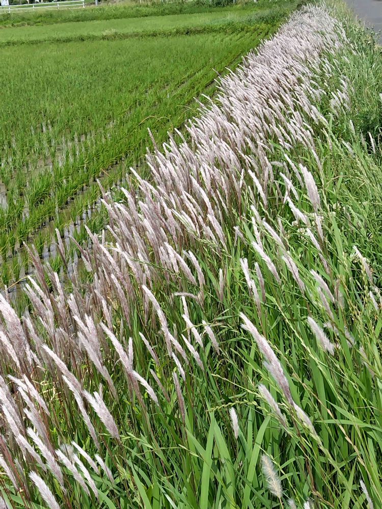 散歩で出会ったニンニクの花とチガヤです。チガヤは田んぼの畦道に沢山生えています。