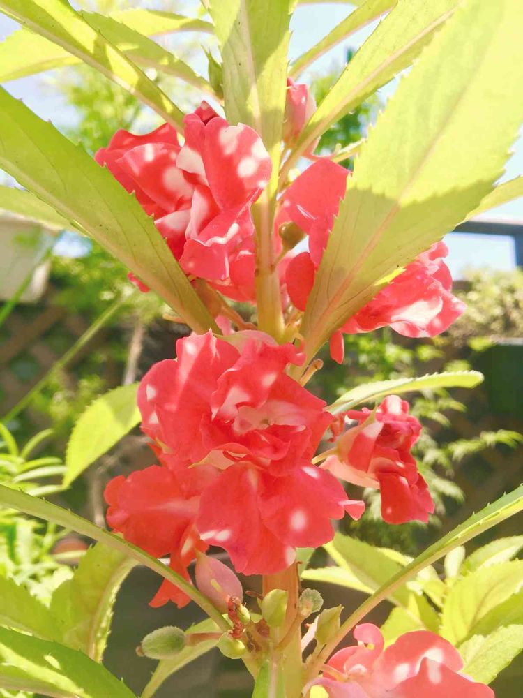 以前、アメリカンブルーのプランターから発芽した鳳仙花。