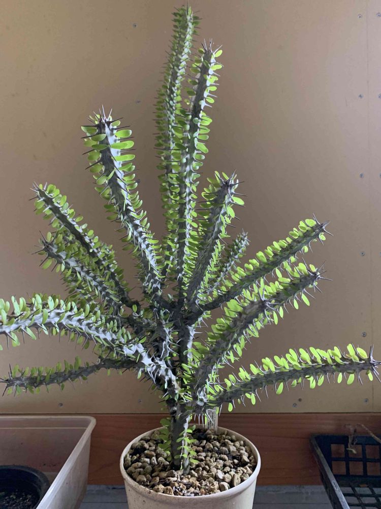 冬の間、室内でほぼ断水状態にしていたら、葉も無くなり枯れ木の様相でした。
