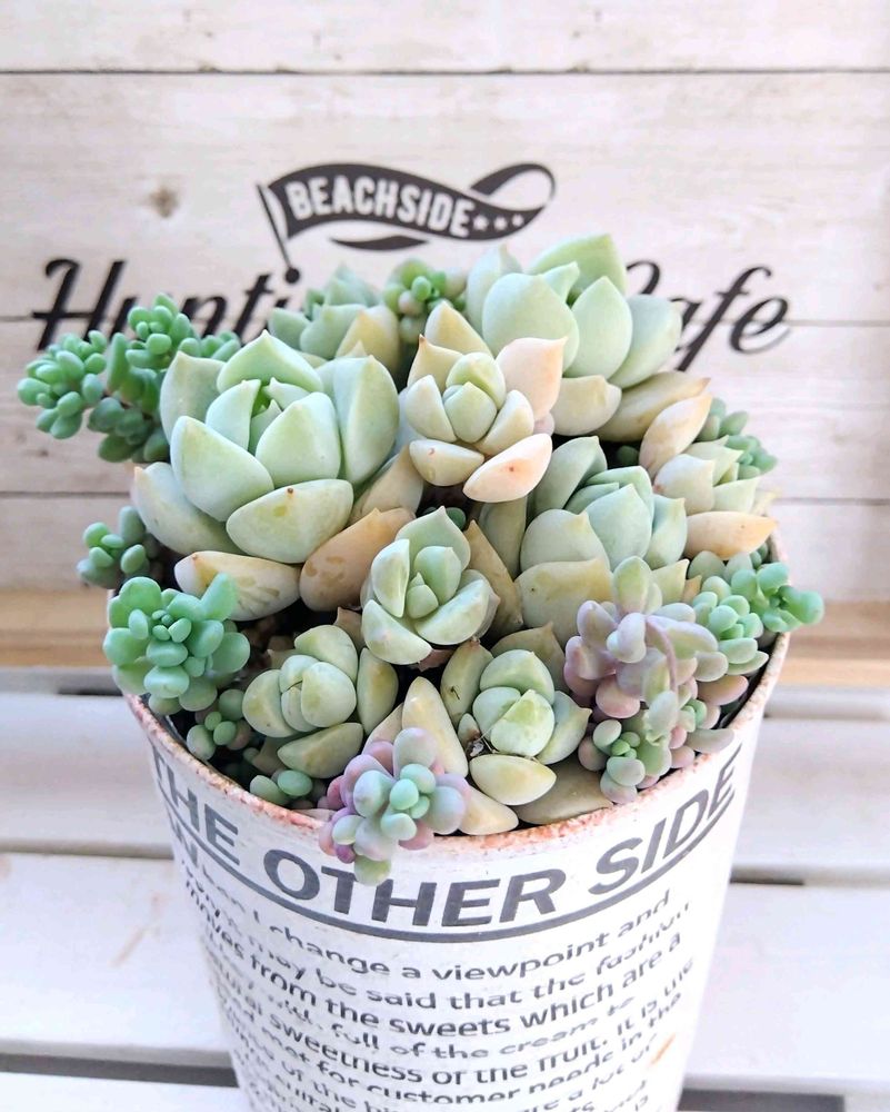 長らくGSをおサボりしていた時、多肉のお世話もおサボりしていたので、以前のパープルヘイズと白牡丹の寄せ植えもガラガラになっていました