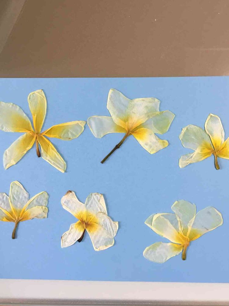 先日、病院裏で拾ってきたプルメリアの押し花完成しました。香りもほのかに残っています。