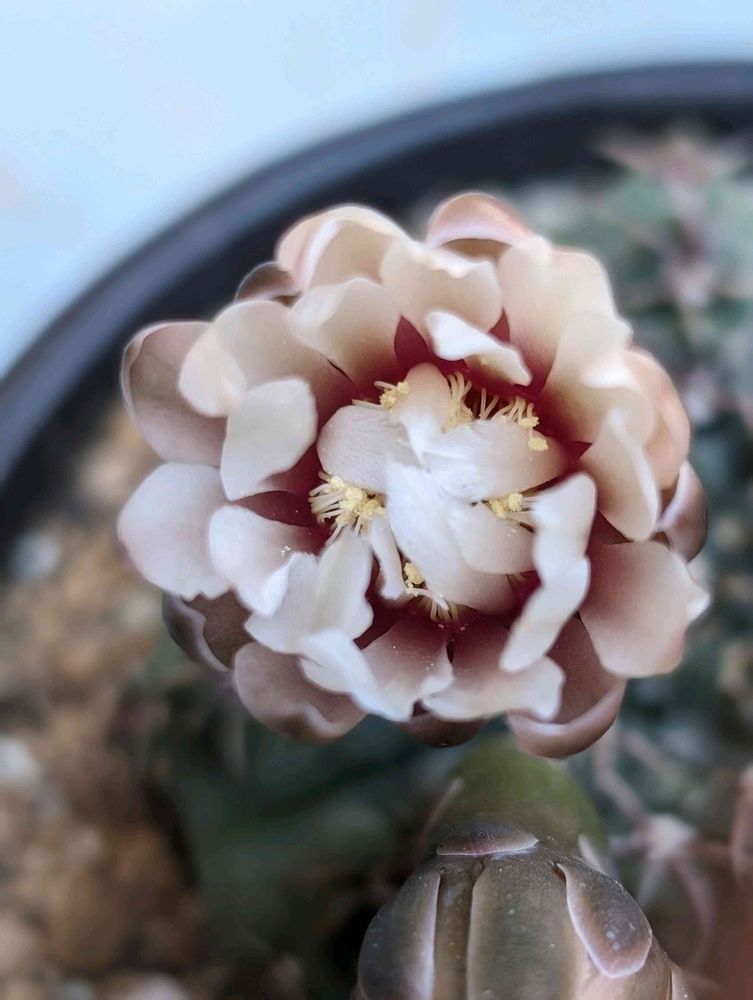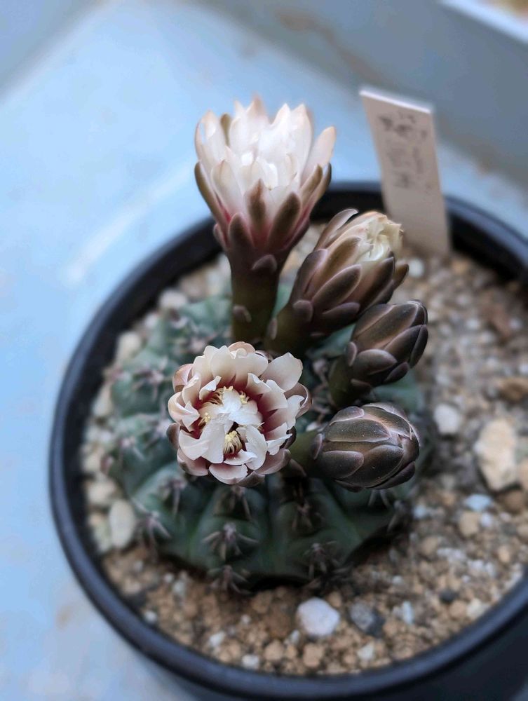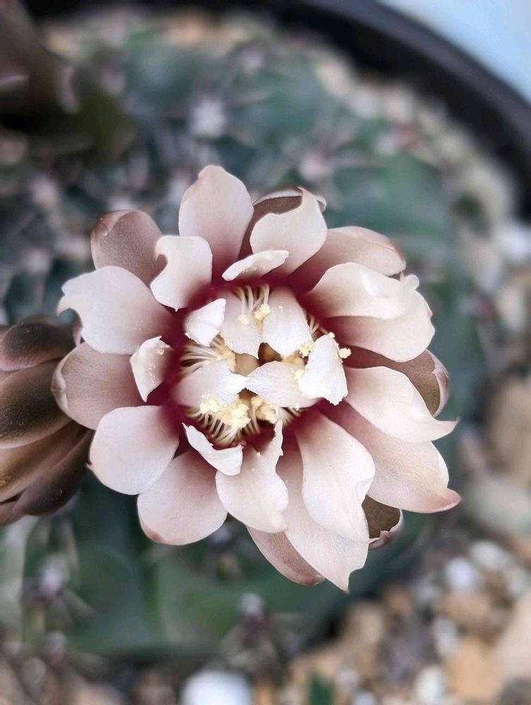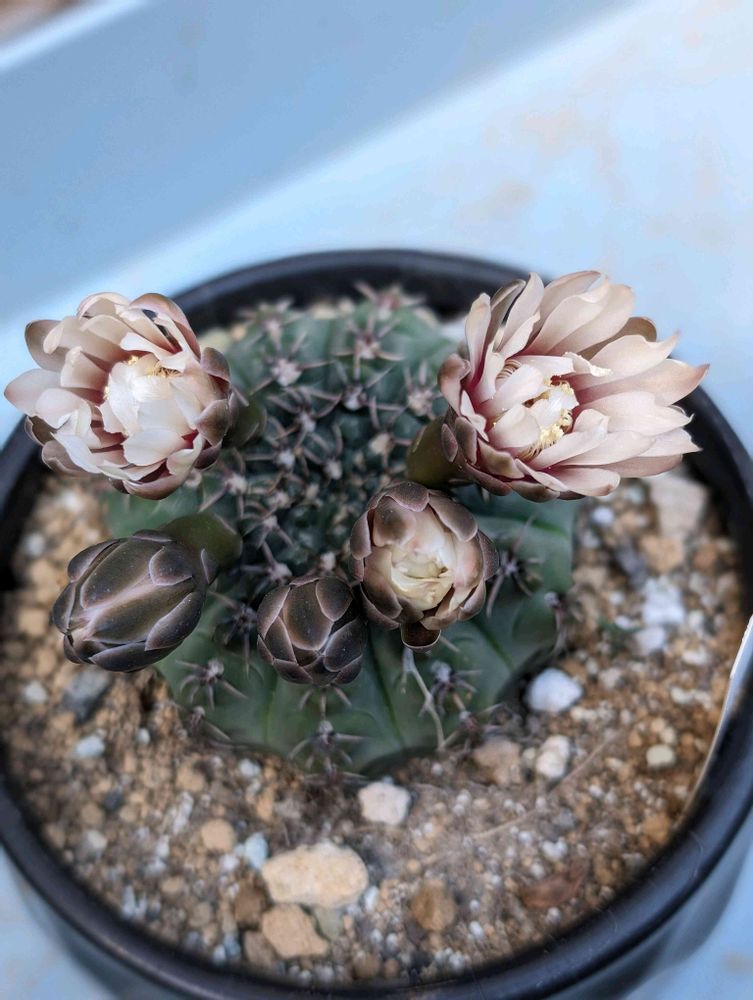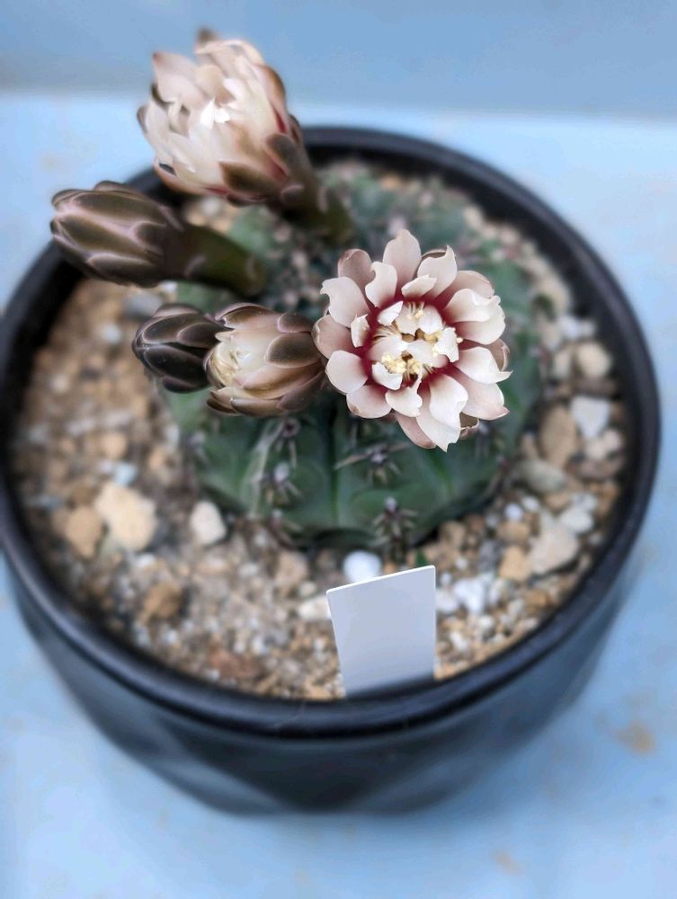 さん、サボテン、ギムノカリキウム属はこういった色合いが多い(真っ赤な緋花玉は除く)から、お勧めですよ。日本の蒸し暑い夏にも耐える、強いサボテンです😉👍