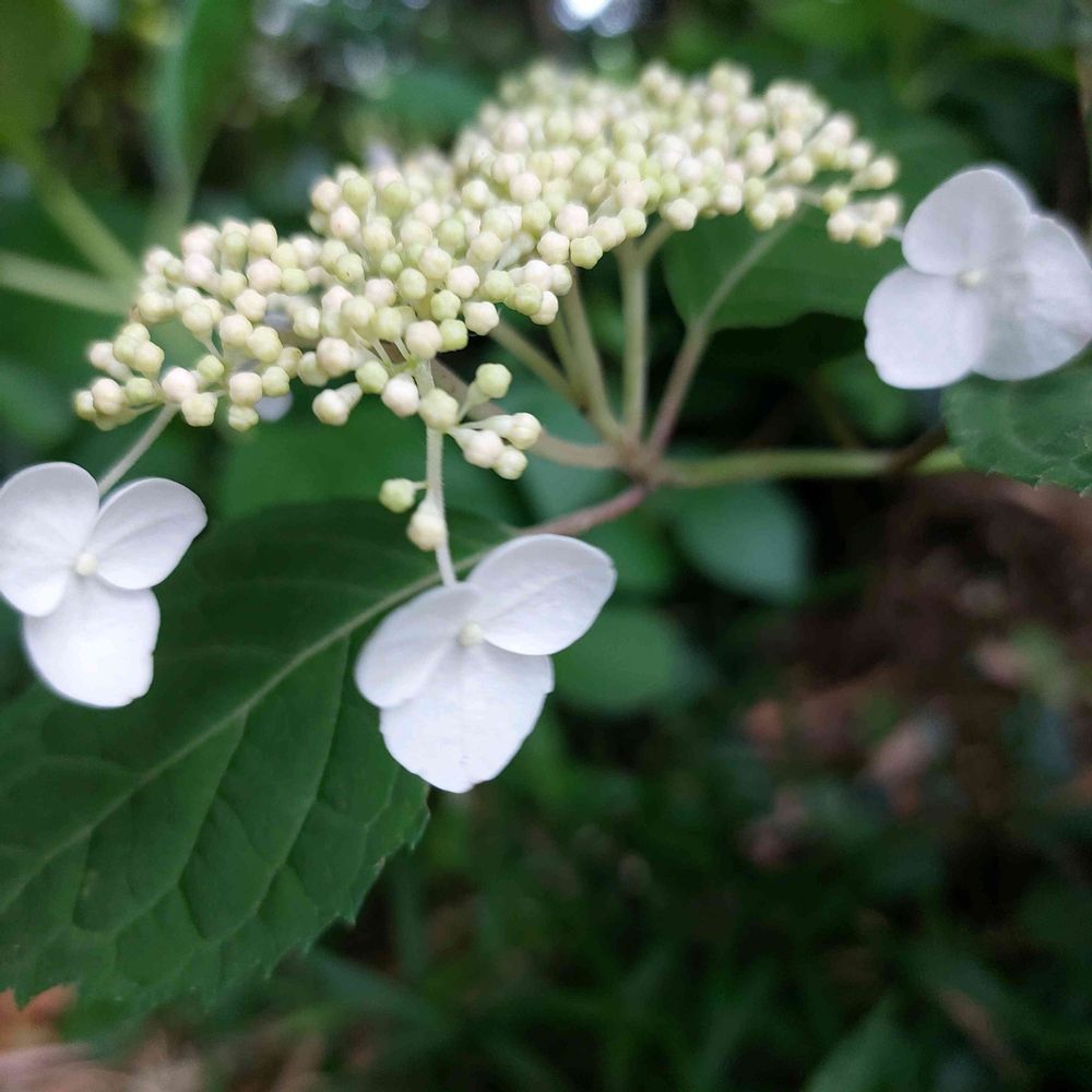 ヤマアジサイ紅、真っ白もあるのね🤍🤍🤍