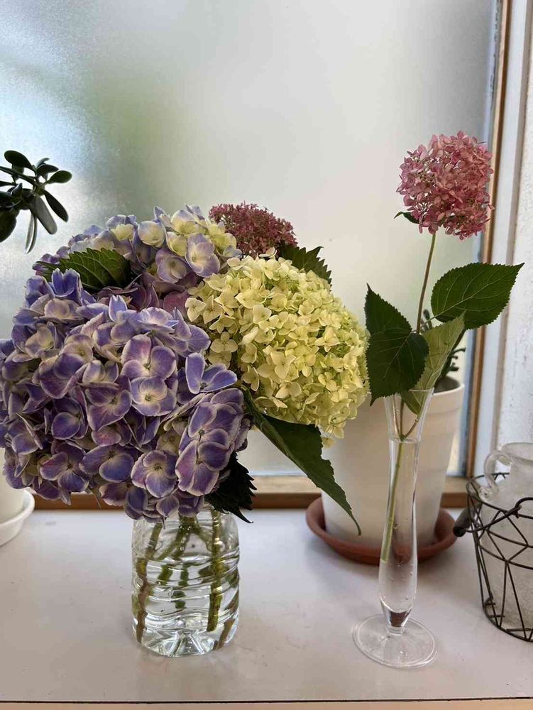 お誕生日プレゼントのお花のお裾分けとは何とも嬉しいですね〜お返しにお庭の紫陽花を✂️…ペットボトルと言う所が👍素敵です〜お友達との距離感が伝わります😁