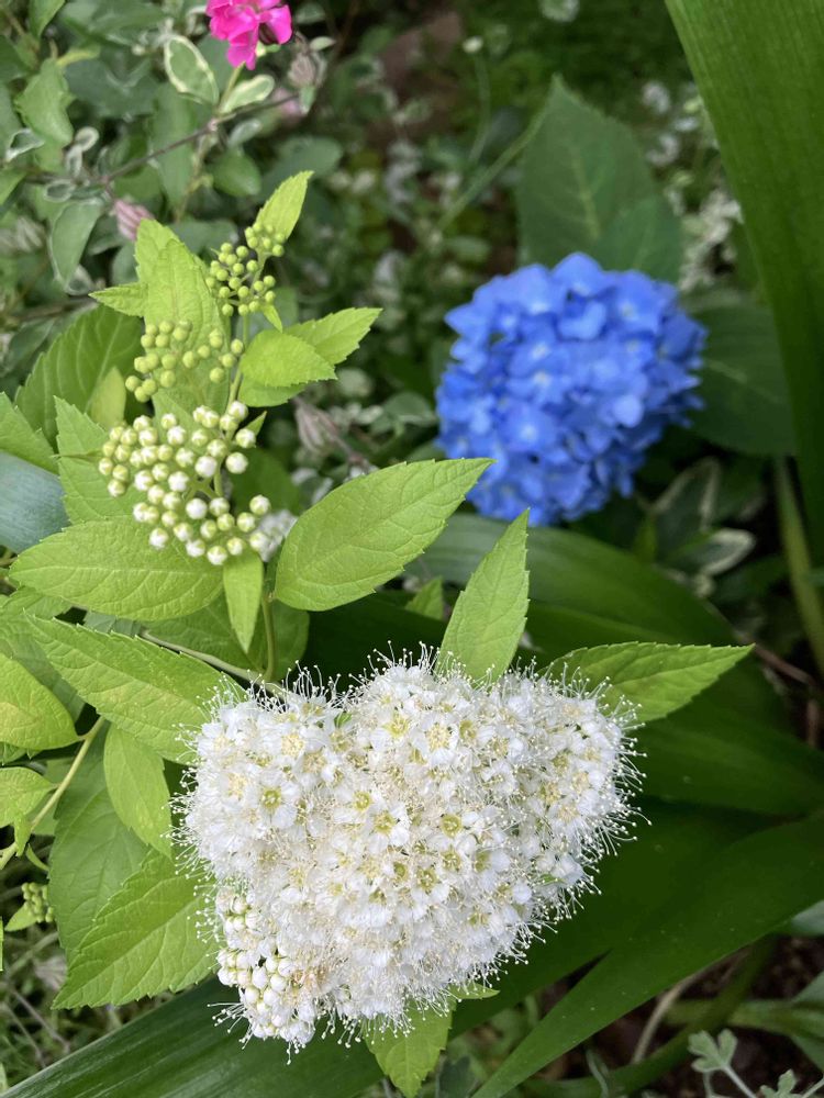 白いシモツケは葉っぱが明るいライムグリーンなのがお気に入りです♬