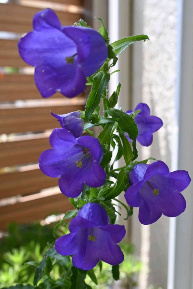 ④昨日の暴風で紫陽花は折れましたが、軒下避難のカンパニュラは残りました💜