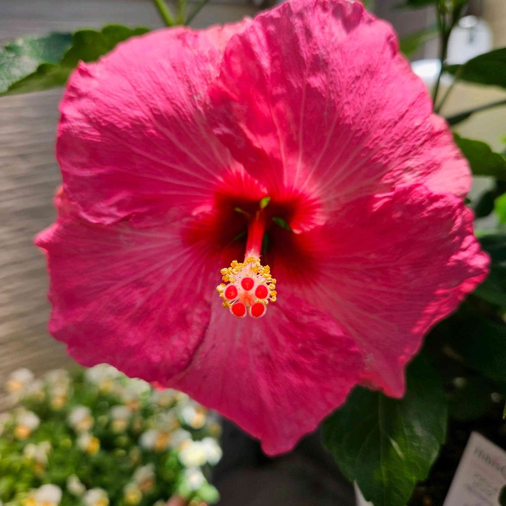 濃いピンク色🩷❤️の花びら💕花姿が美しい〜ハイビスカスの開花は天気に左右されますよね😔
