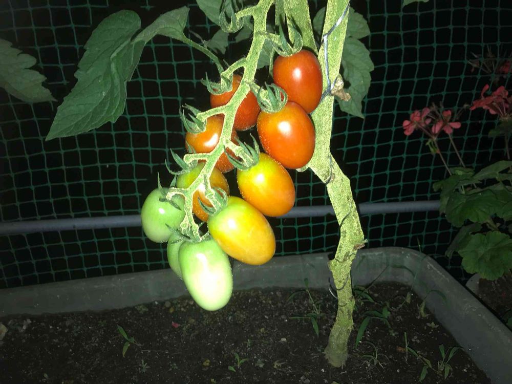 ベランダのプランター栽培のミニトマト🍅🍅🍅🍅🍅のアイコも取りごろです。