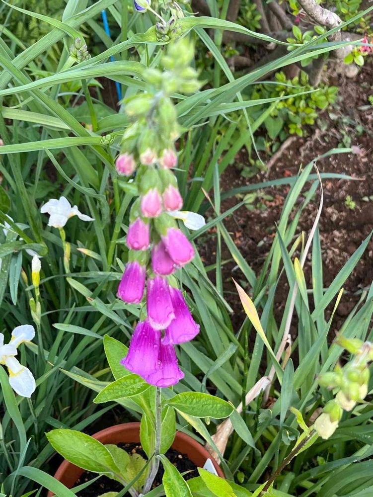 去年安曇野のガーデンママさんのオープンガーデンに伺って頂いいて来たジギタリスの種から2本だけ咲きました✌️✌️