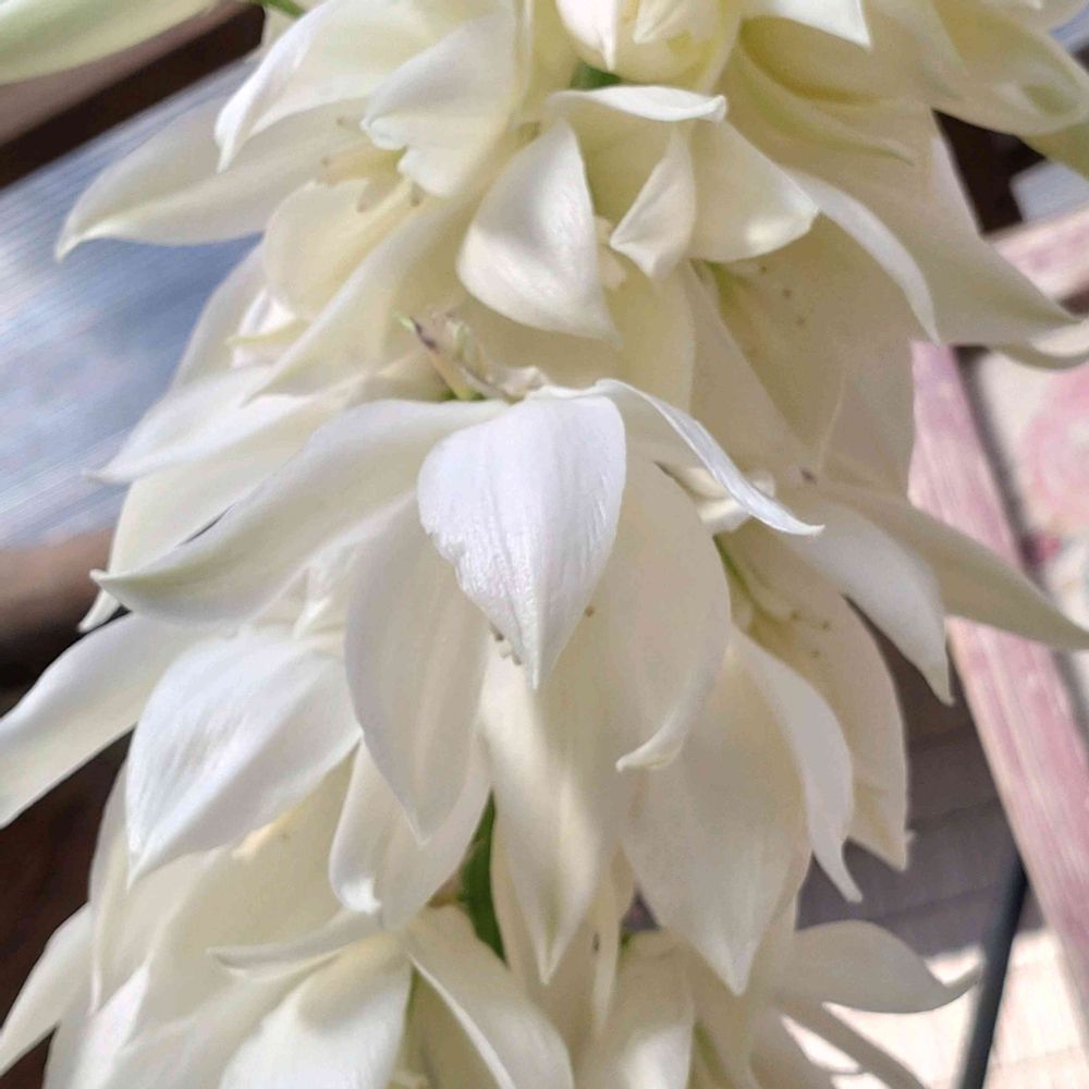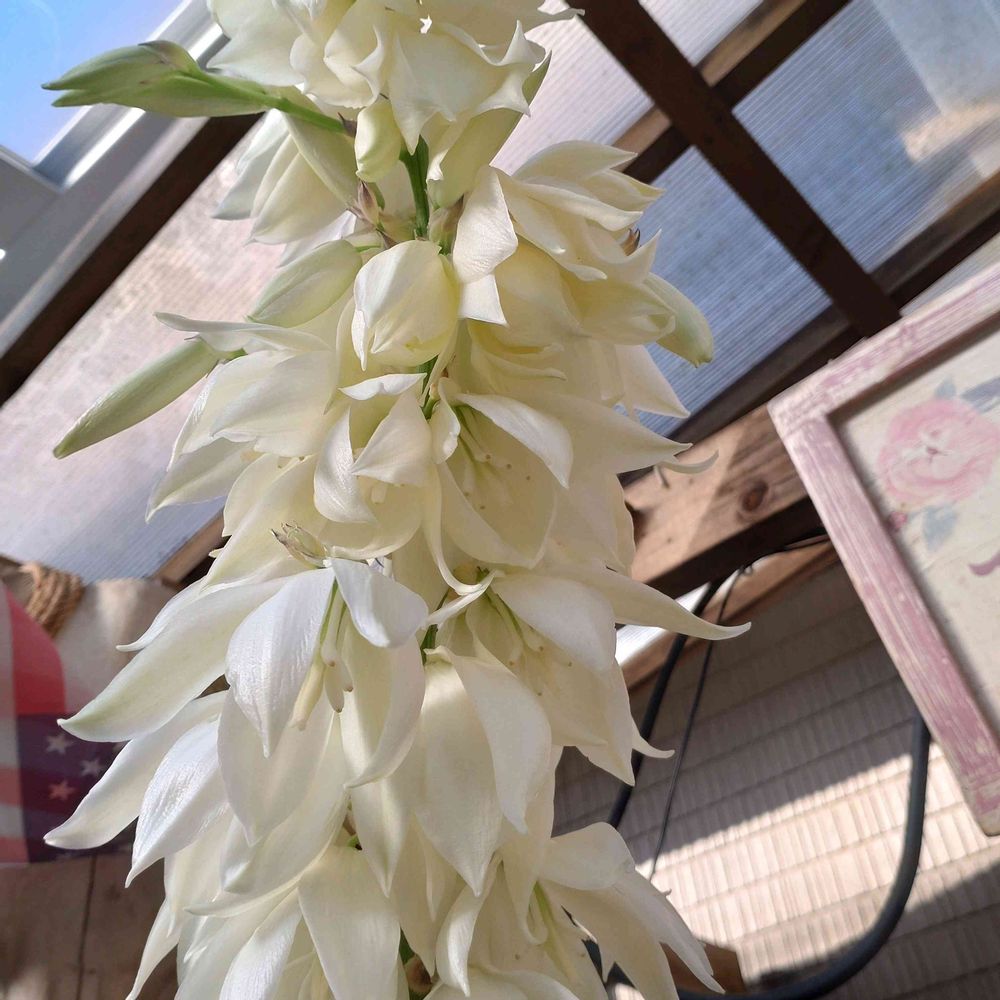 ユッカ・ロストラータの花が咲きました。花が咲くと枝が分頭するらしく、滅多に咲かないそうですが、近所の園芸店の苗も咲いていたから、昨年の酷暑が原因だろうか🤔