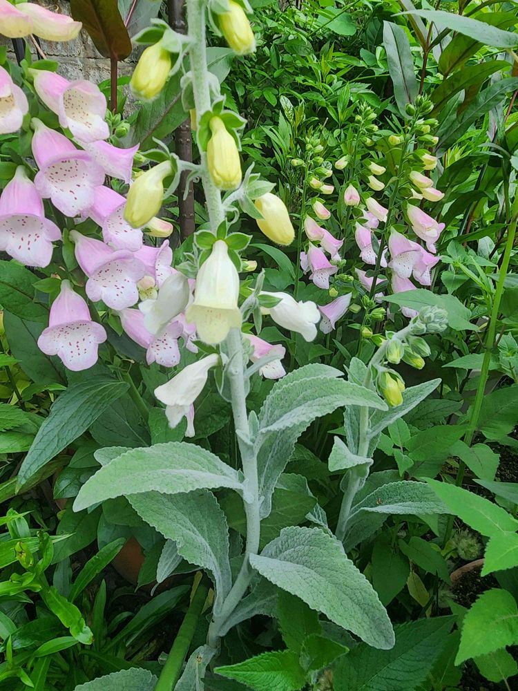 以前からのピンク色のジギタリスの横に、昨年 苗でお迎えした