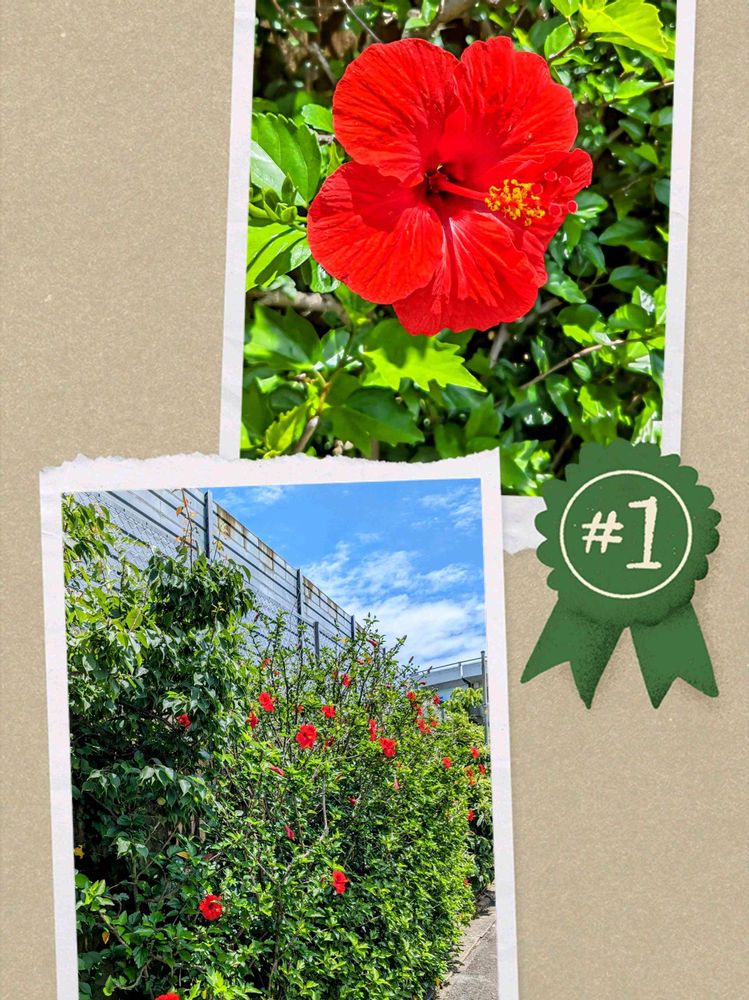 3)いつもの散歩道でハイビスカス🌺の花が咲いていました