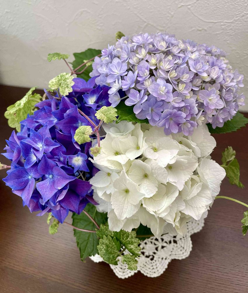 お庭のアジサイを飾ってみました〜