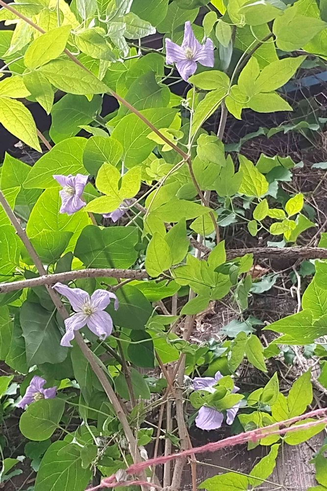 うちのクレマチスで1番遅咲きのエミリア プラ ターちゃんが咲きました。