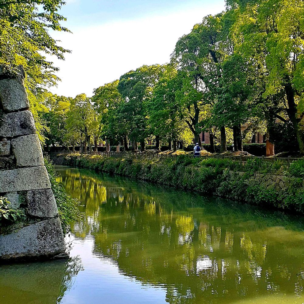 お堀に映った緑がキレイ🎶😃🌿🌿🌿