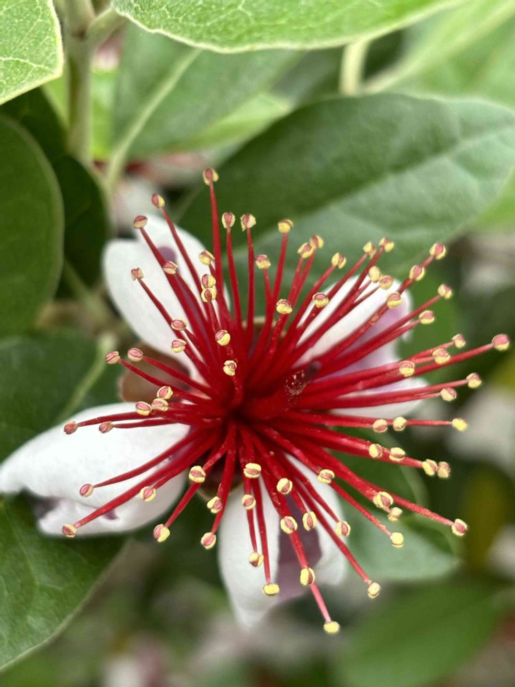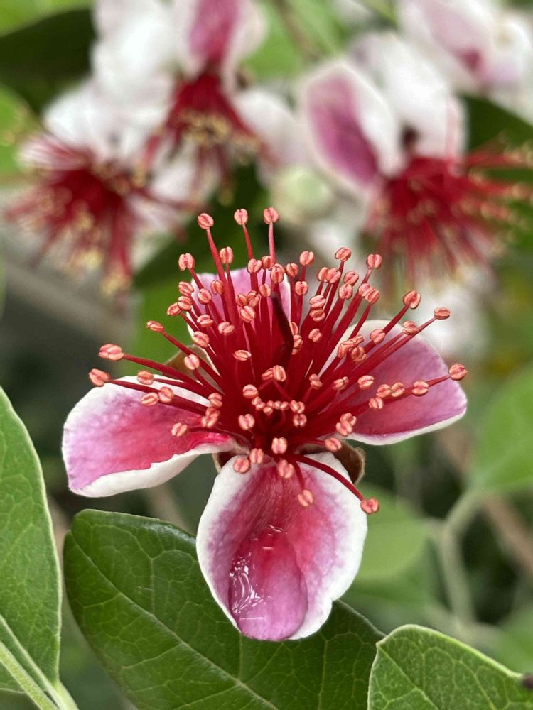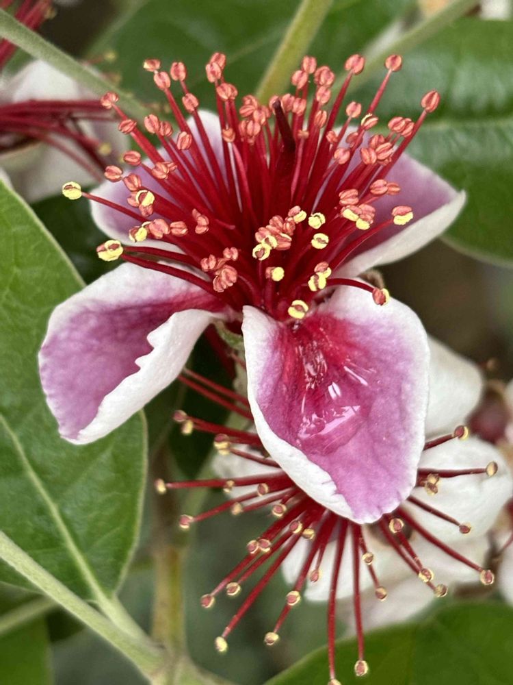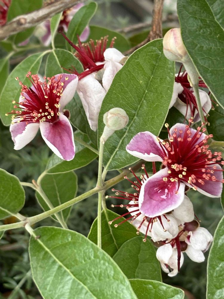 「フェイジョア」最盛期でたくさんの花をつけています。