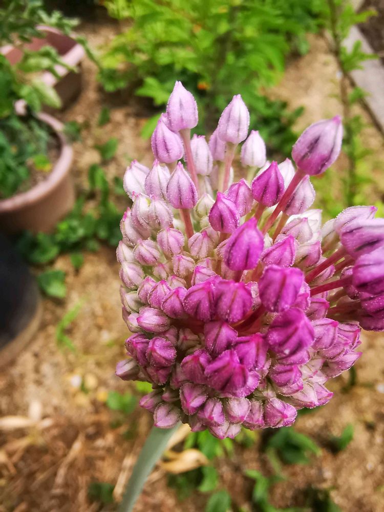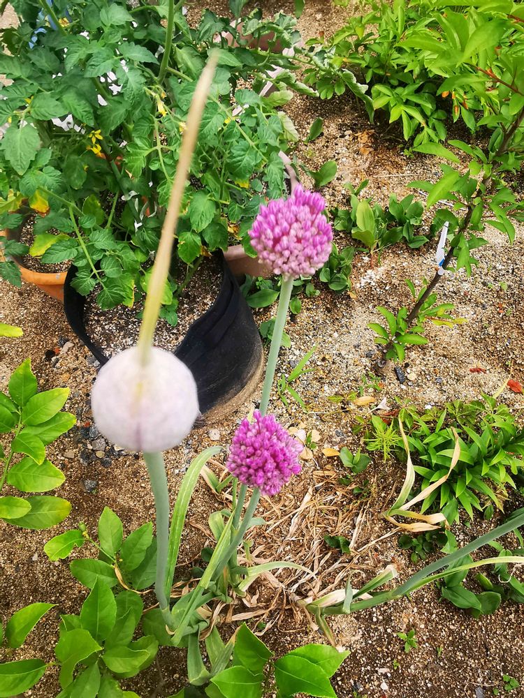 アリウムいう名のお宅の花の色が、ジャンボニンニクより濃いめの様に感じます。