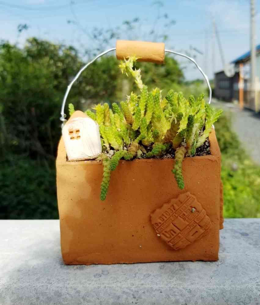 手作りのテラコッタ鉢に寄せ植えしたのですね!