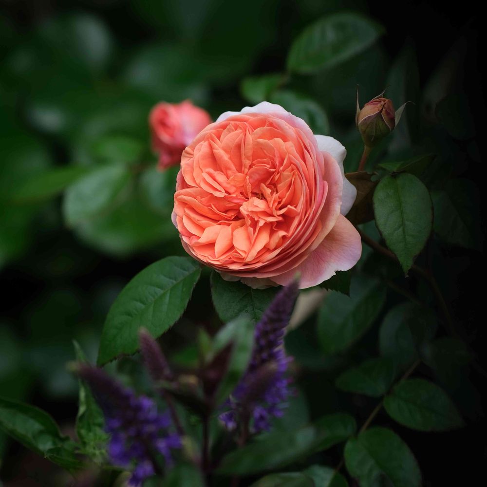 ②バラ「チッペンデール」🧡昨日開きかけの写真を投稿しましたが、今朝はもう、しっかり開いていました♪