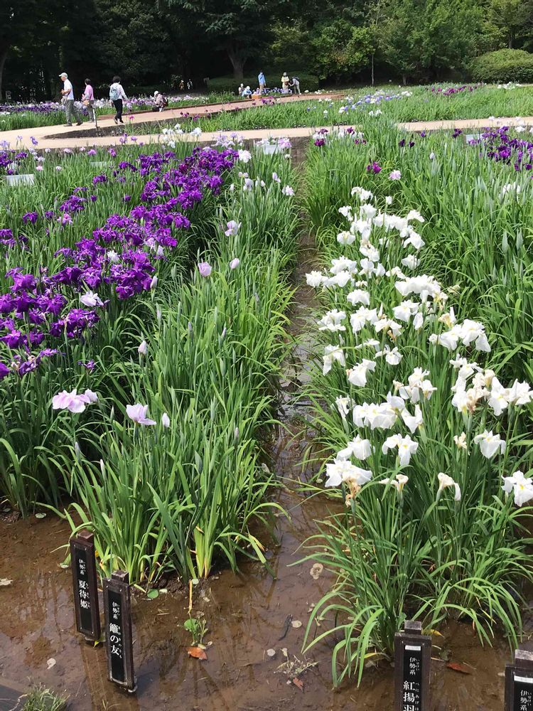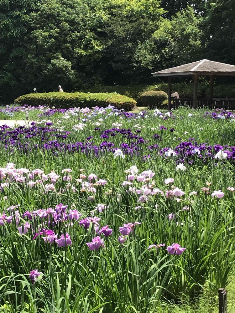 花菖蒲の色や緑の木々 初夏の公園は