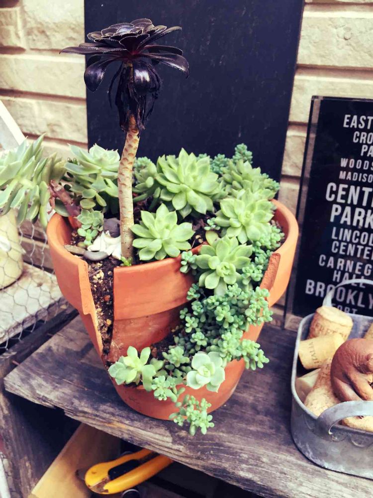 割れ鉢に多肉、私もしてみたいのですが割る勇気がありません😥