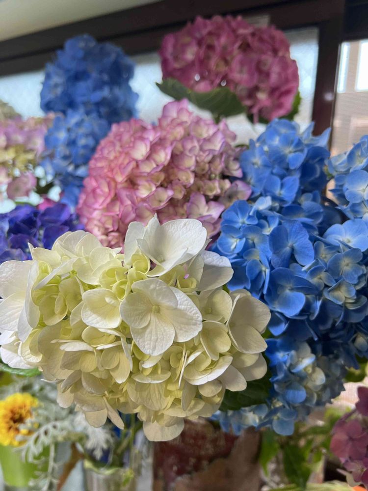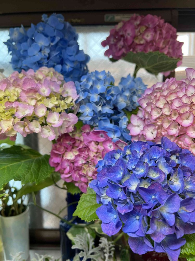 キッチンの出窓は紫陽花祭りです😅